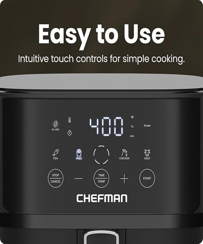 Freidora de aire Chefman: 6 cuartos (aprox. 1,8 litros) Freidora de aire compacta para comidas rápid